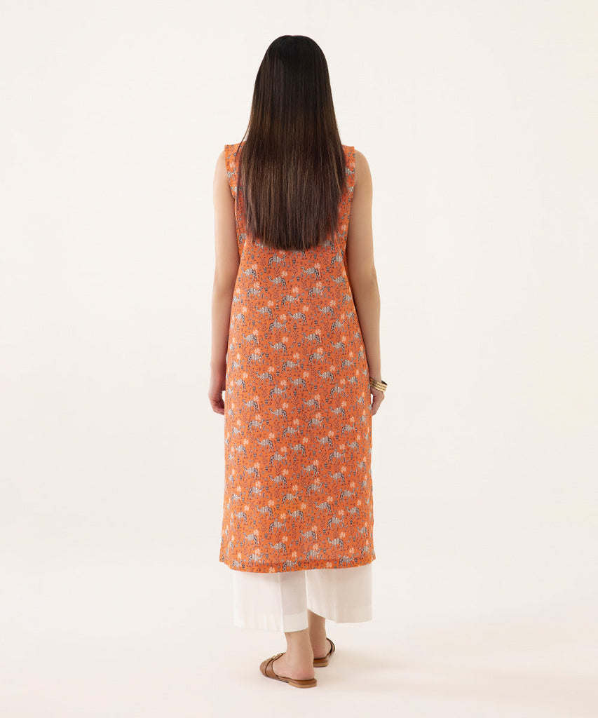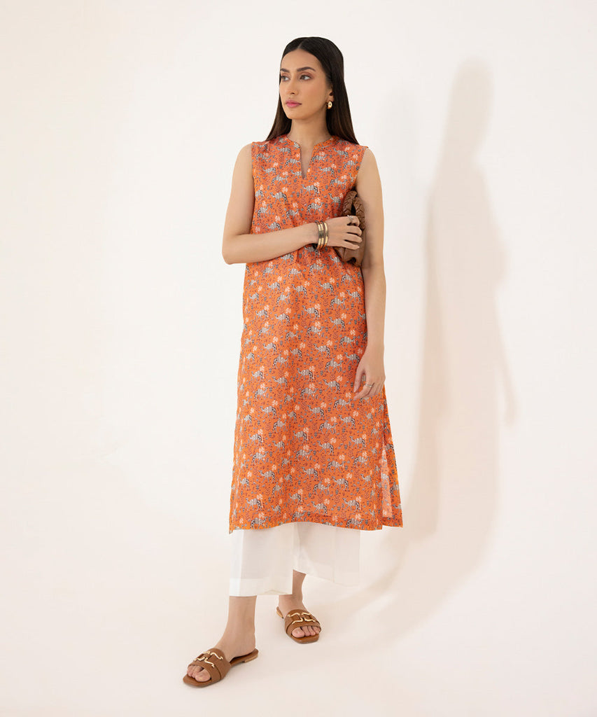 Straight Kurta Style and affordability is at the heart of this collection featuring vibrant orange printed sleeveless...