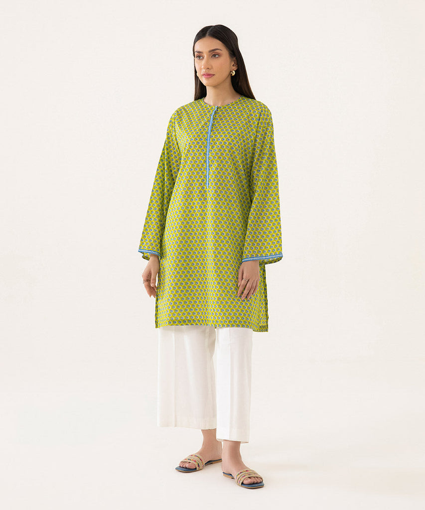 Printed Front With Embroidery Accents On Placket, Printed Back, Full Sleeves, Crew Neckline