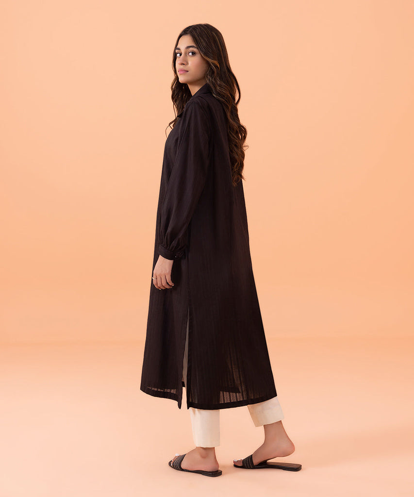 Straight Kurta For a crisp statement don our black straight silhouette with collar. Details: Dyed Front, Dyed Plain ...