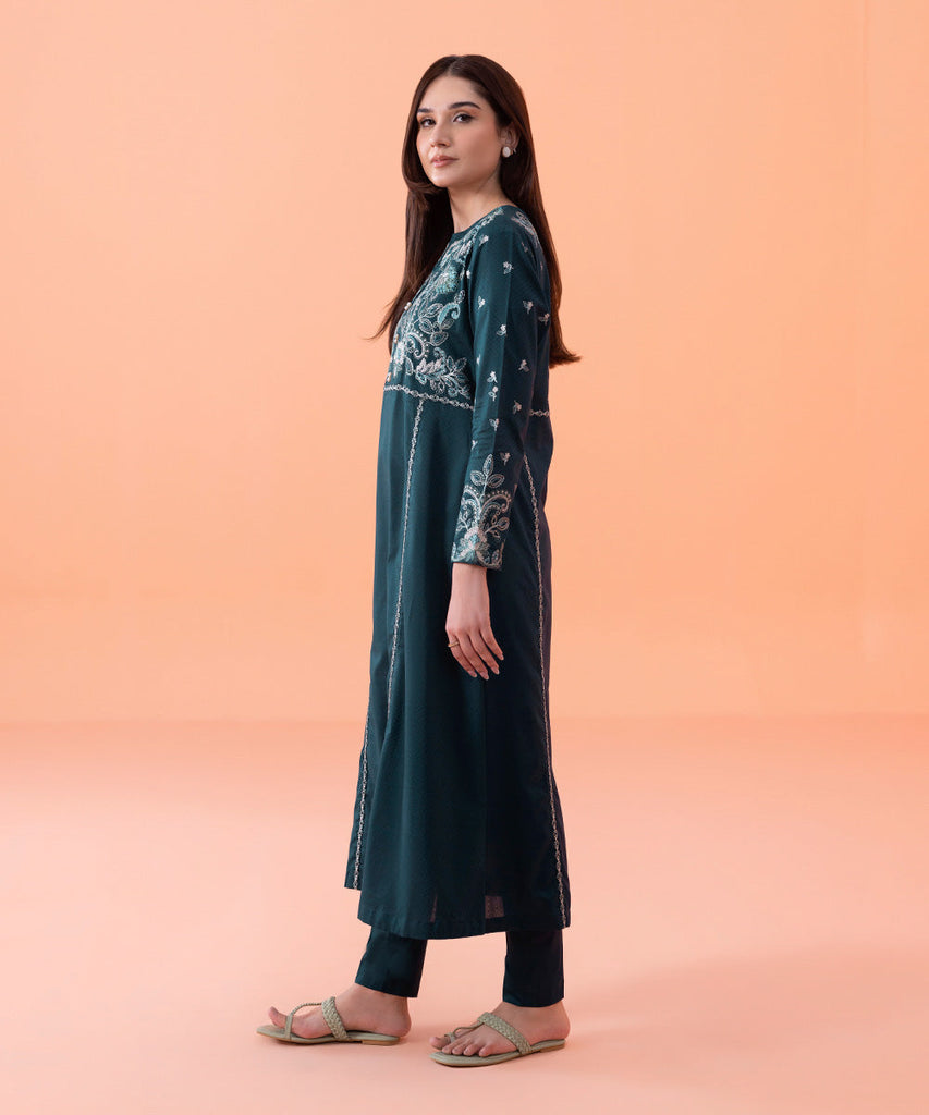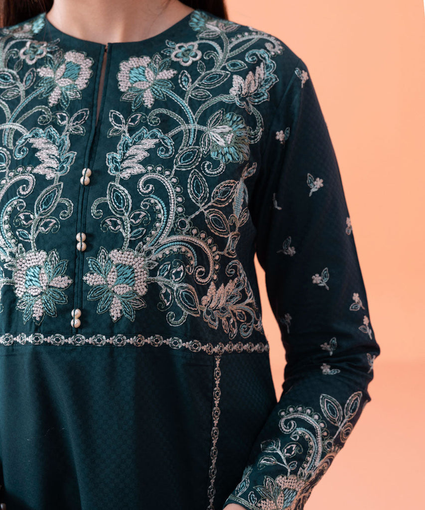 Embroidered Dyed Front, Dyed Plain Back, Full Dyed Embroidered Sleeves, Crew Neckline With Slit