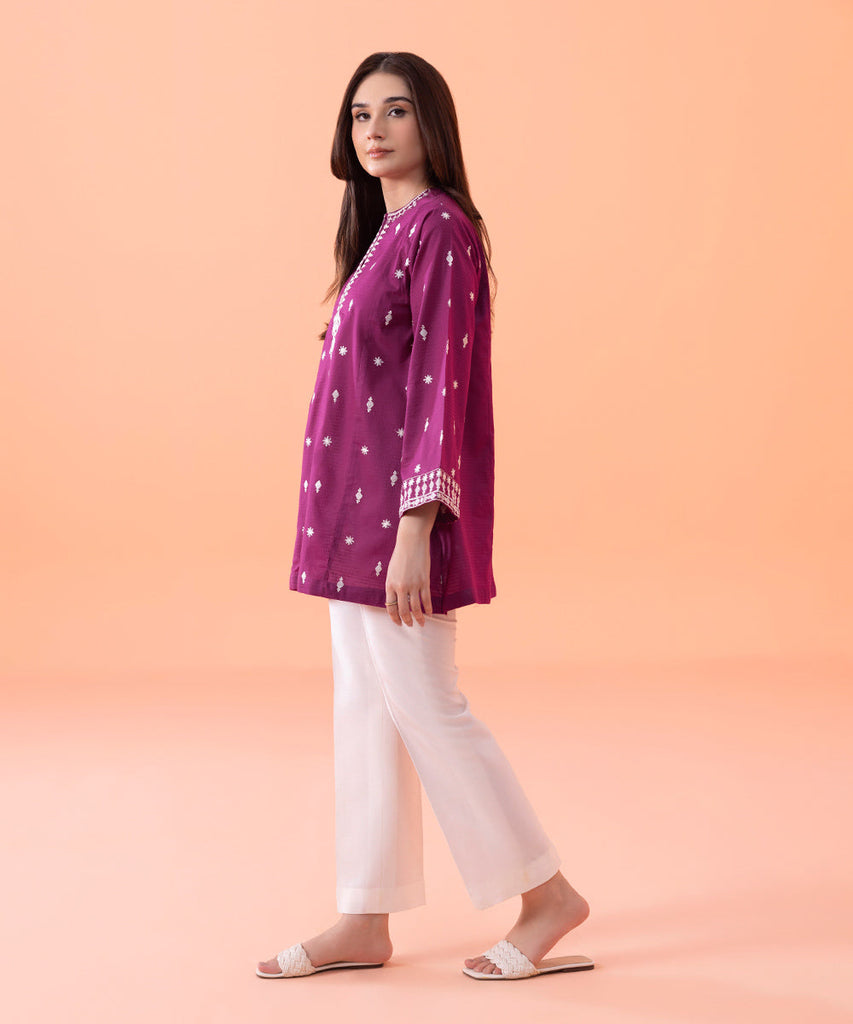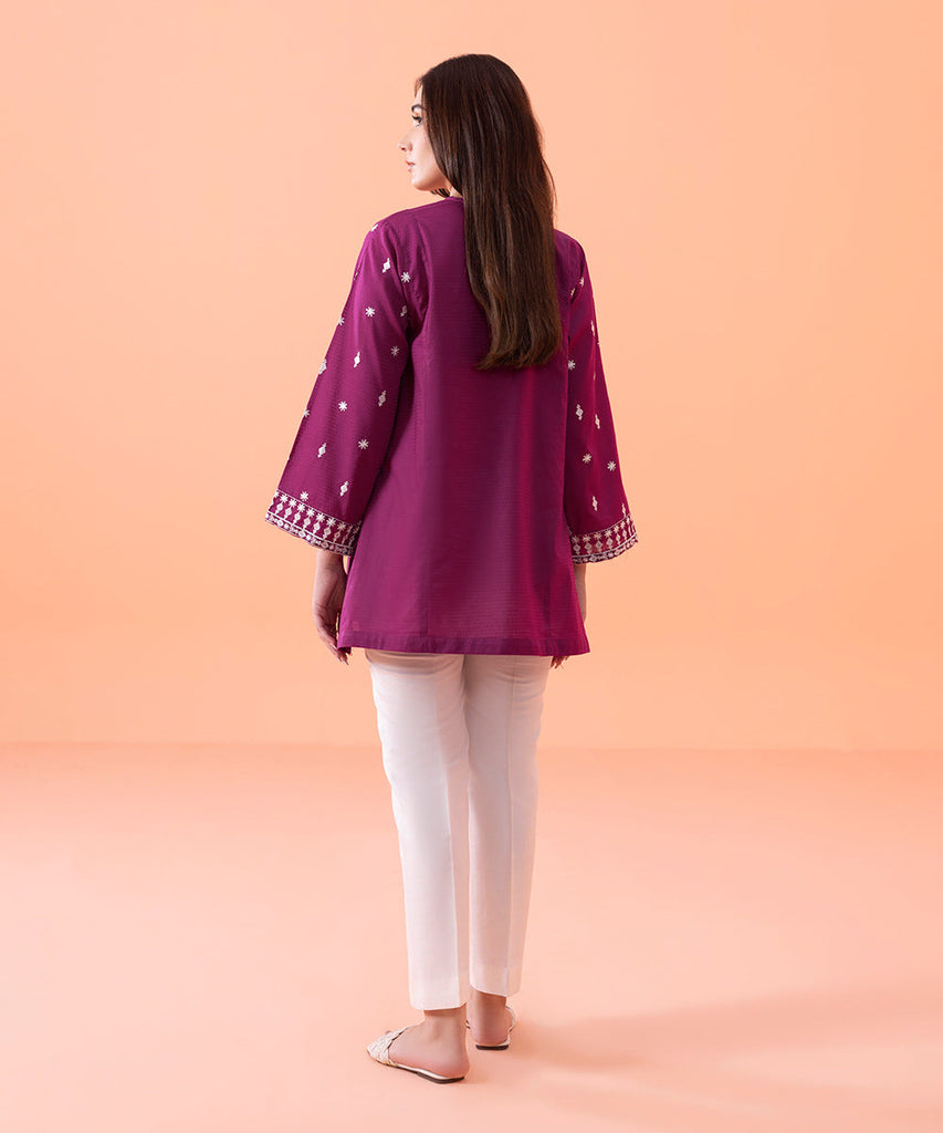 Embroidered Dyed Front, Dyed Plain Back, Full Embroidered Dyed Sleeves, Round Neckline