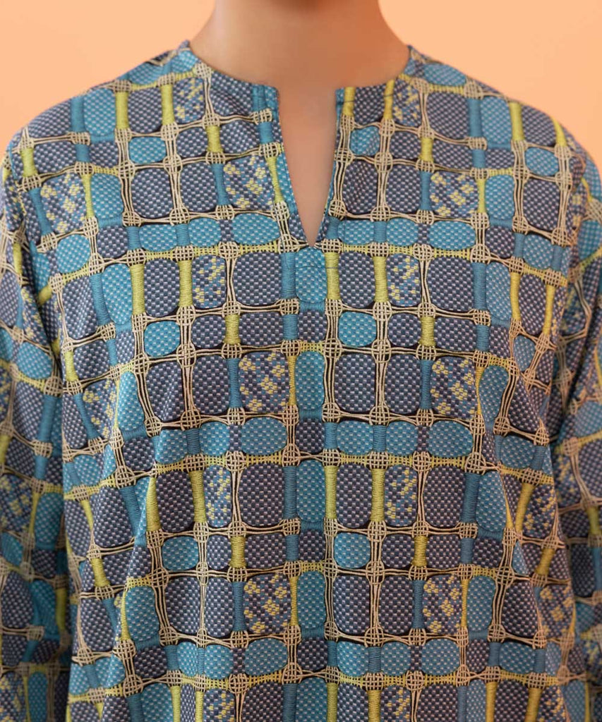 Printed Front, Printed Back, Full Printed Sleeves, Round Neckline With Slit