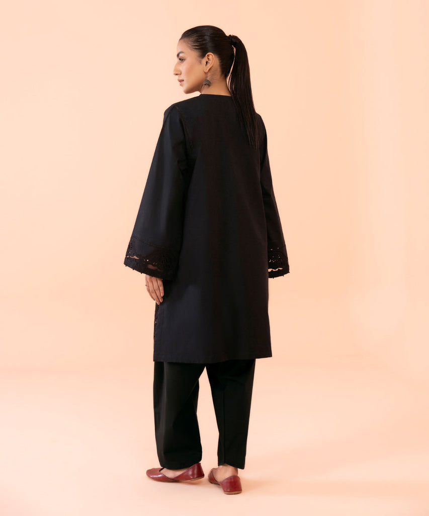 Embroidered Dyed Front, Dyed Plain Back, Full Embroidered Dyed Sleeves, Round Neckline With Slit