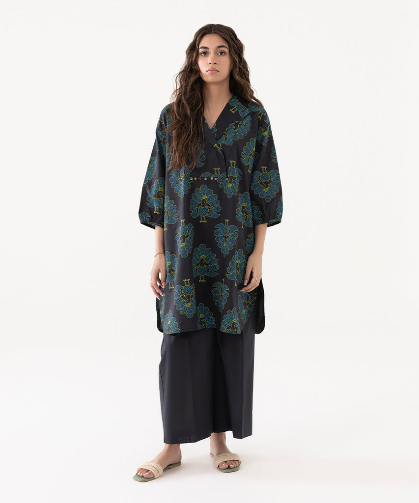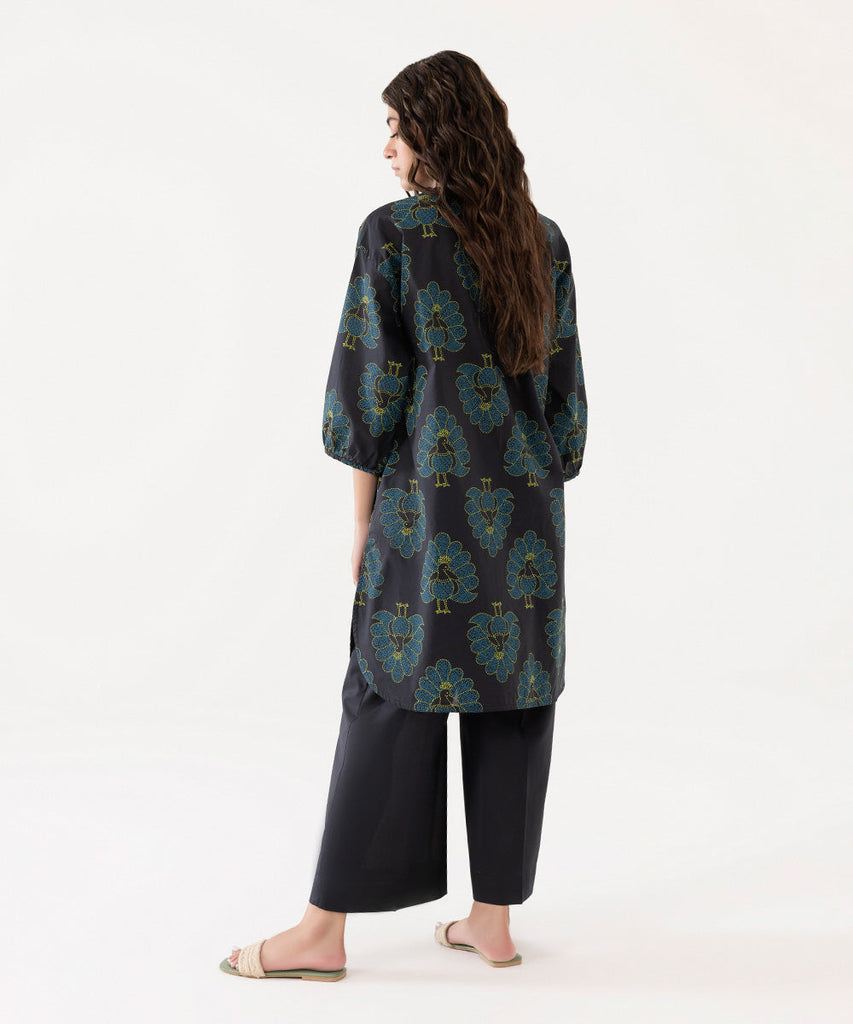 Printed Plain Front, Printed Back, Quarter Sleeves, Collared Neckline