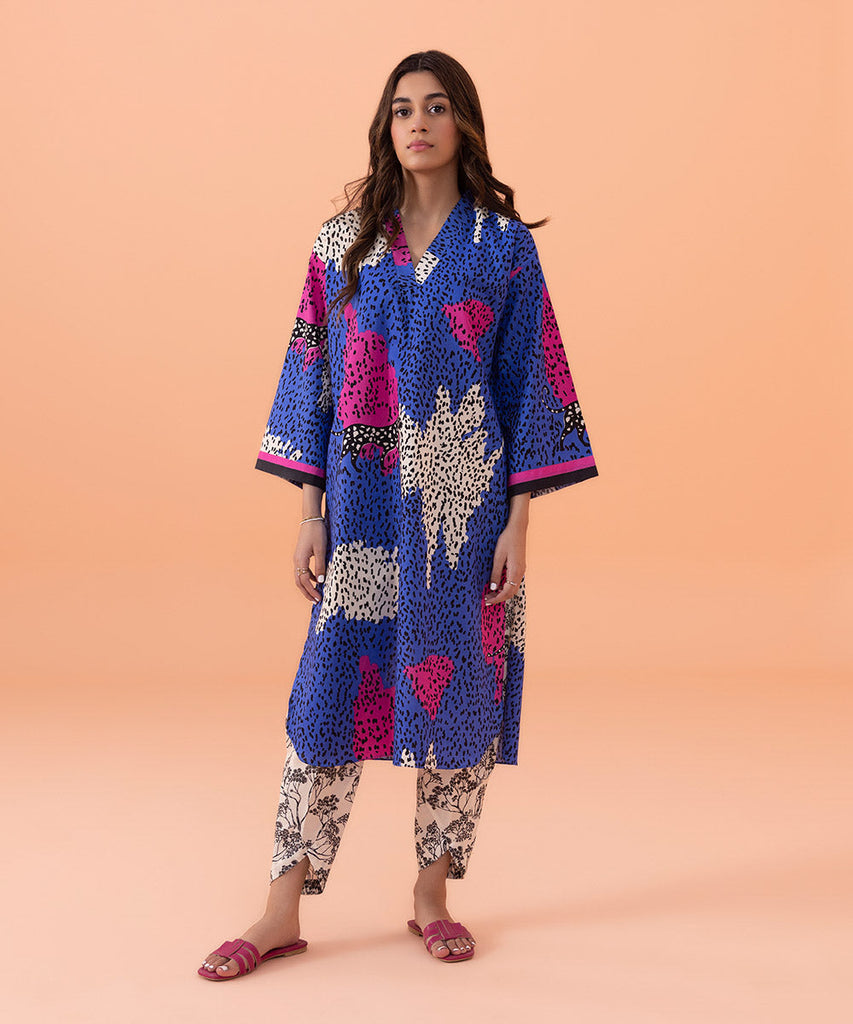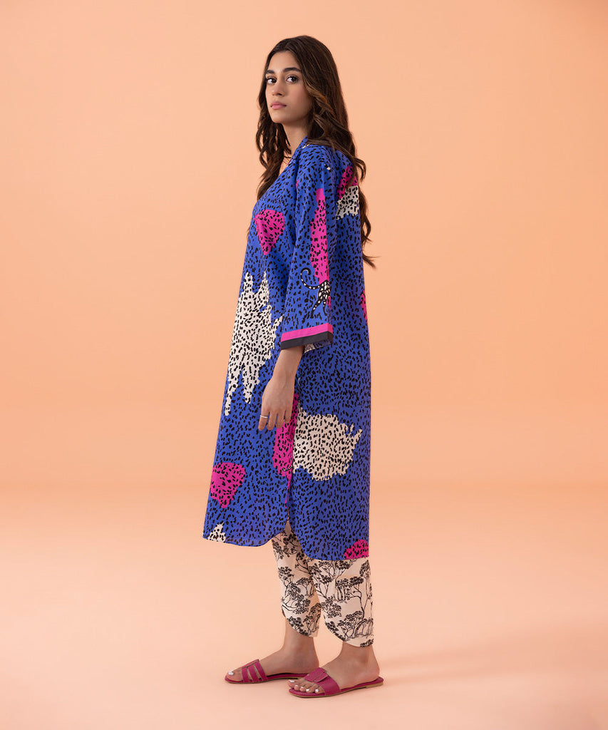 Straight Kurta Stand out in our blue mid length silhouette accented with abstract patterns.