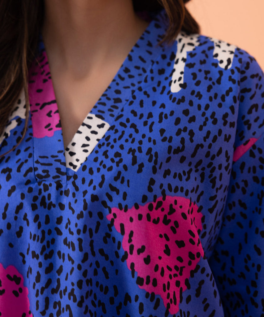 Printed Front, Printed Back, Full Printed Sleeves, V Neckline