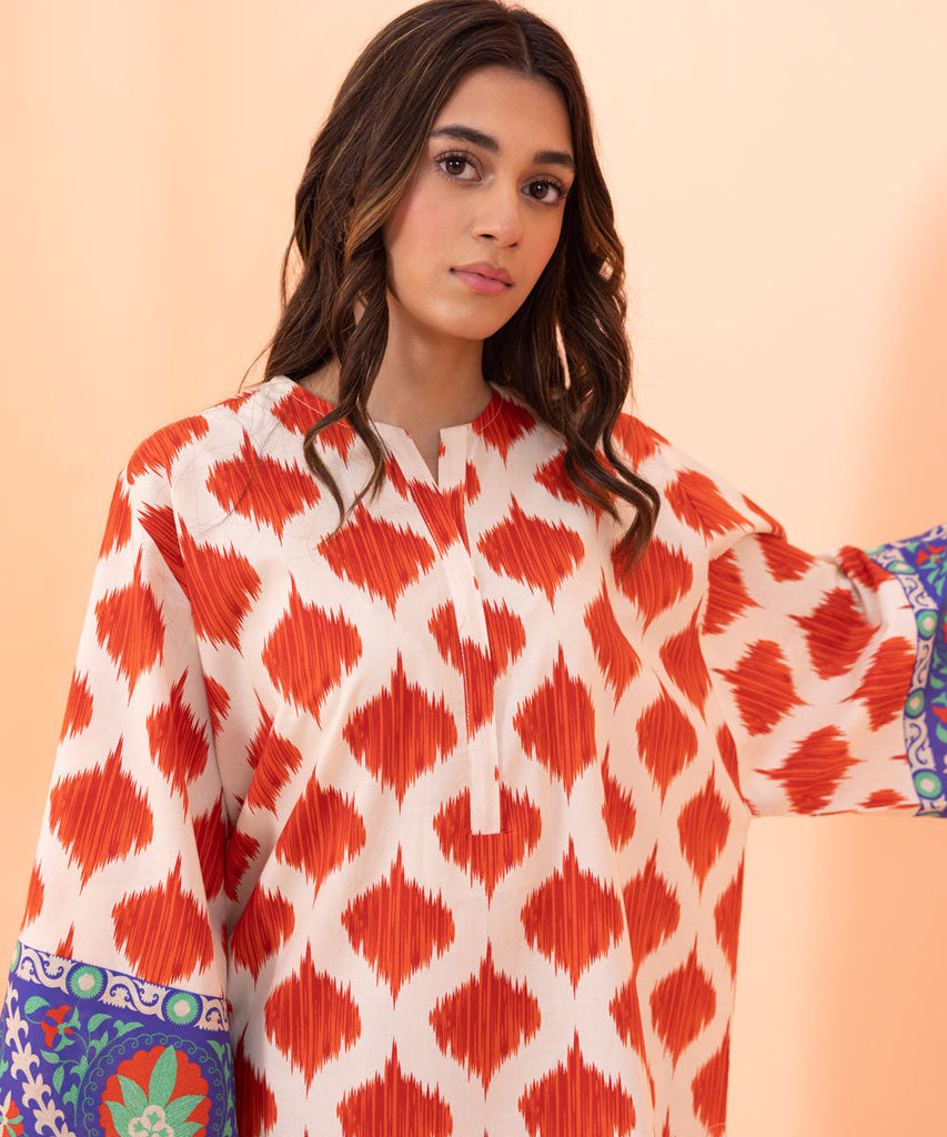 Printed Front, Printed Back, Full Printed Sleeves, Round Neckline With Slit