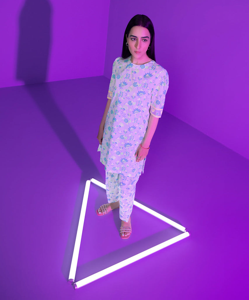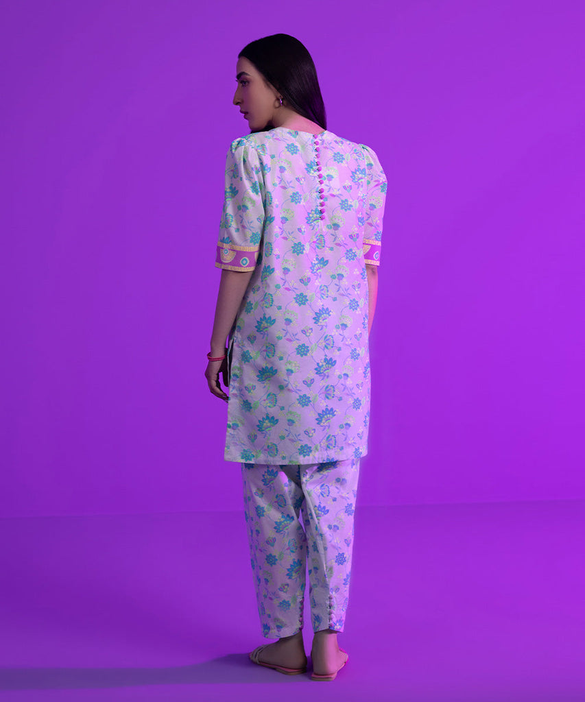 Printed Front, Printed Back, Round Neckline with slit, Full Sleeves.