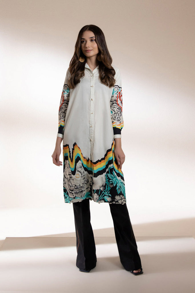 A Line Shirt Elevate your look with this A line silhouette in crepe with printed front and back border with collar ne...