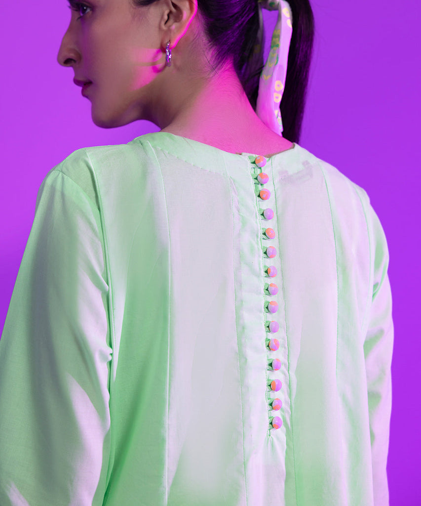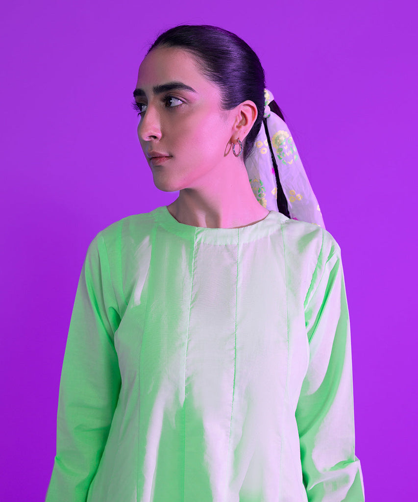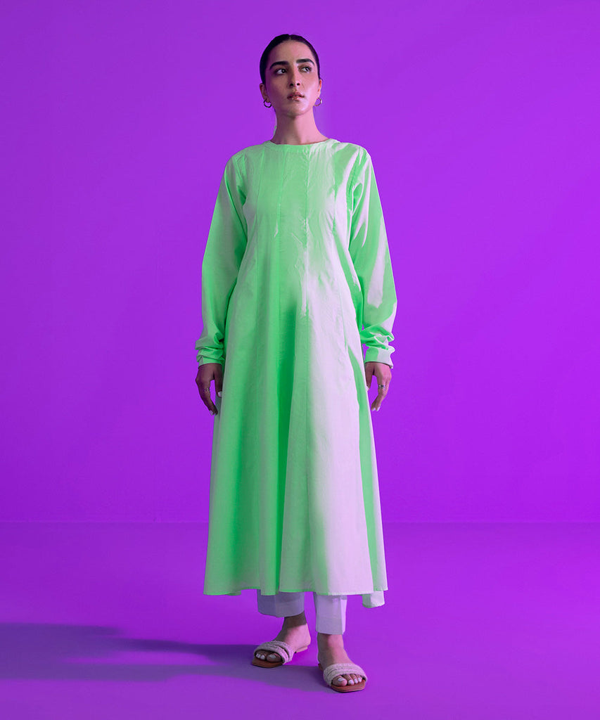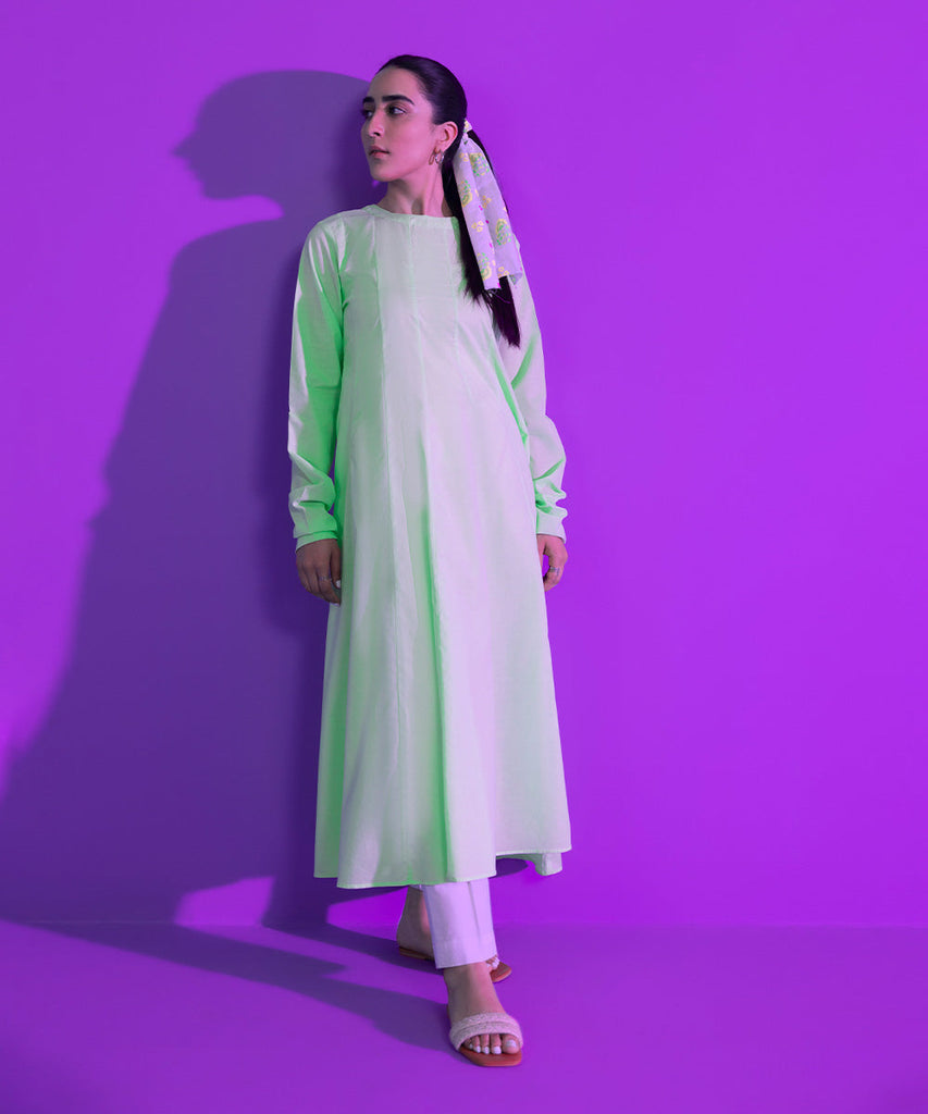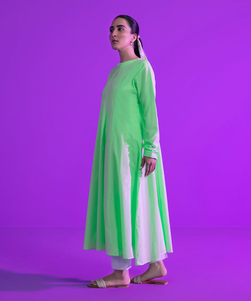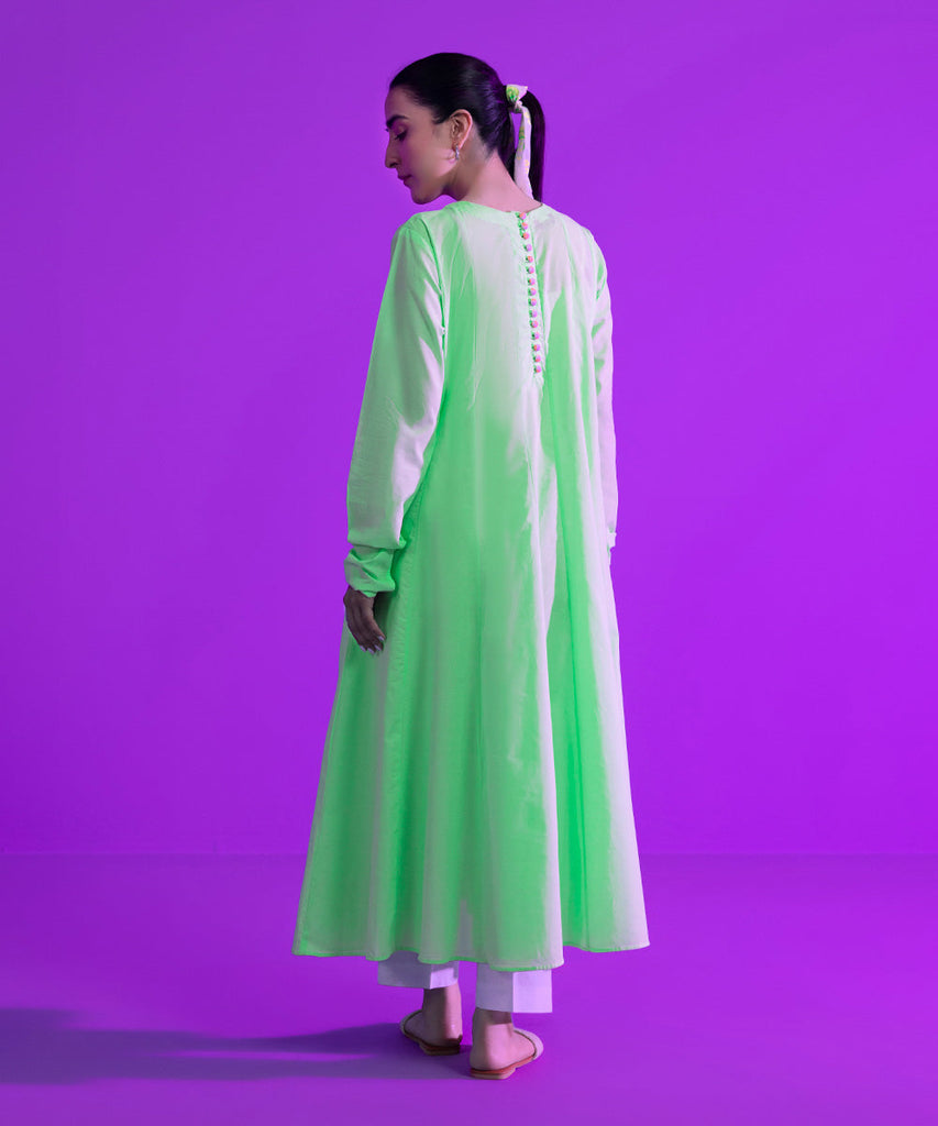 Twirl away this season in this refreshing green kalidaar. Details: Plain Front, Plain Back, Round Neckline, Full Slee...