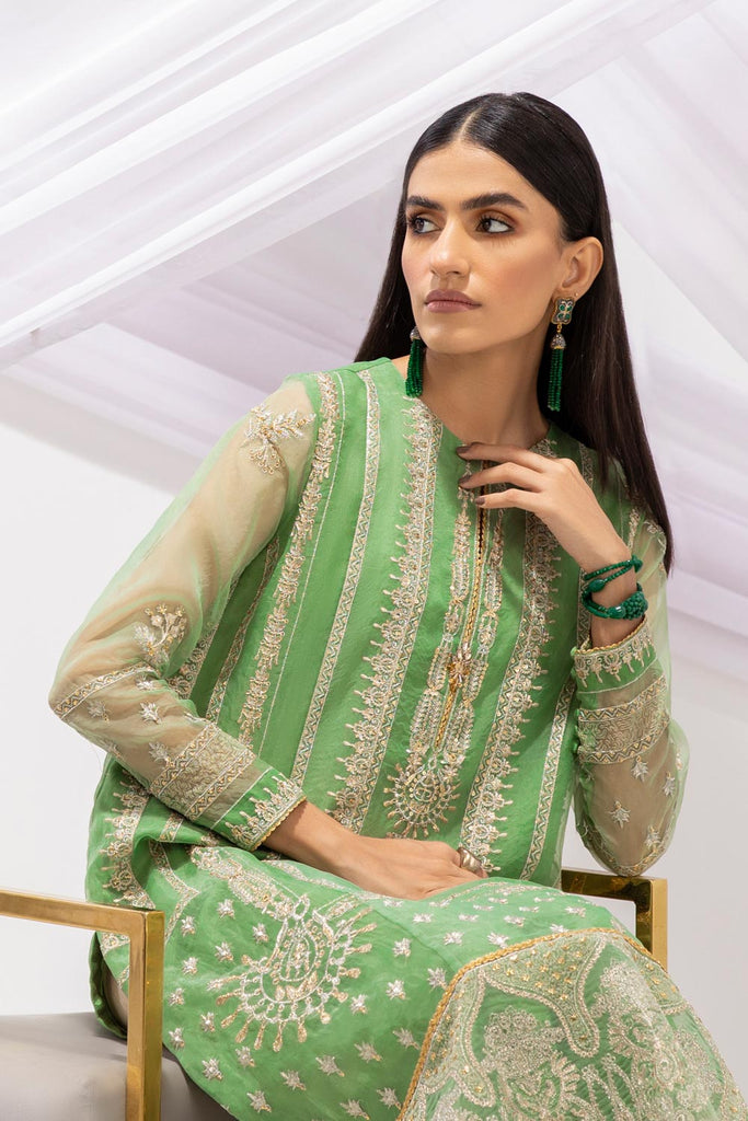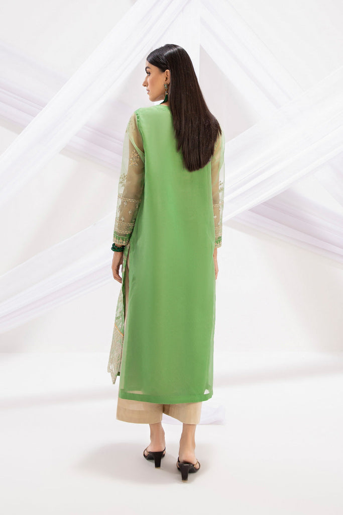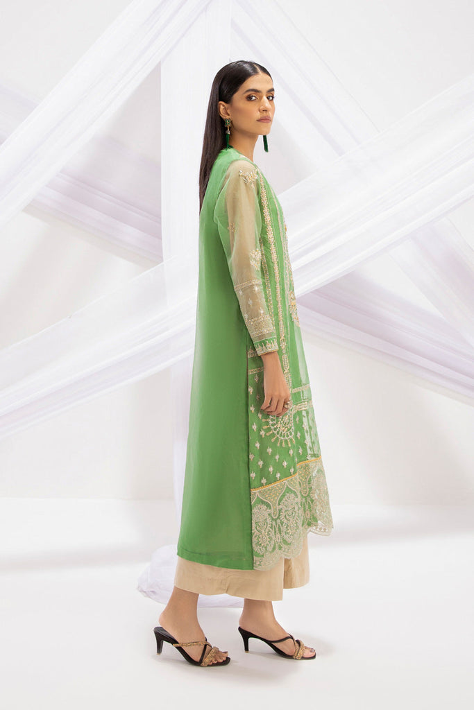 A line Shirt Stand out in the crowd in this delicately embroidered organza shirt imbued in a refreshing green hue. De...