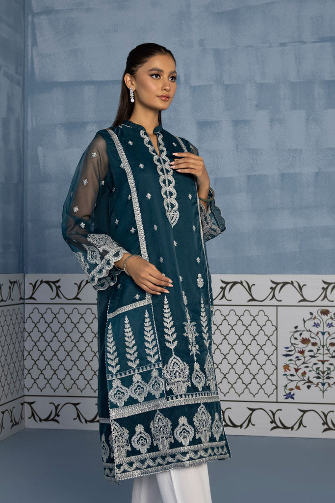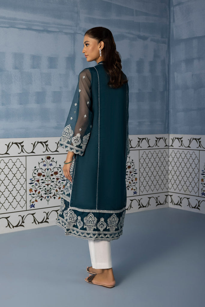A Line Shirt Mesmerize in this sea green hued A line ensemble in organza featuring embroidered front and sleeves.