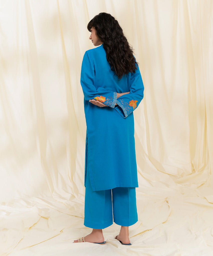 Dyed Plain Front, Dyed Plain Back, Full Embroidered Sleeves, V Neckline