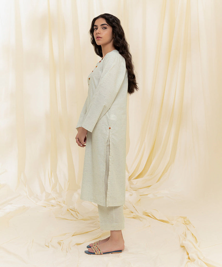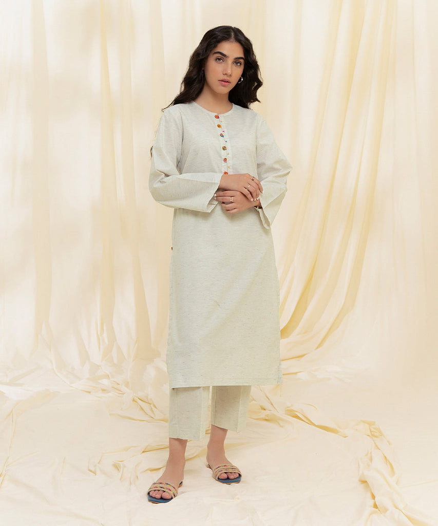 Dyed Front with Button on Neckline, Dyed Plain Back, Full Sleeves, Round Neckline