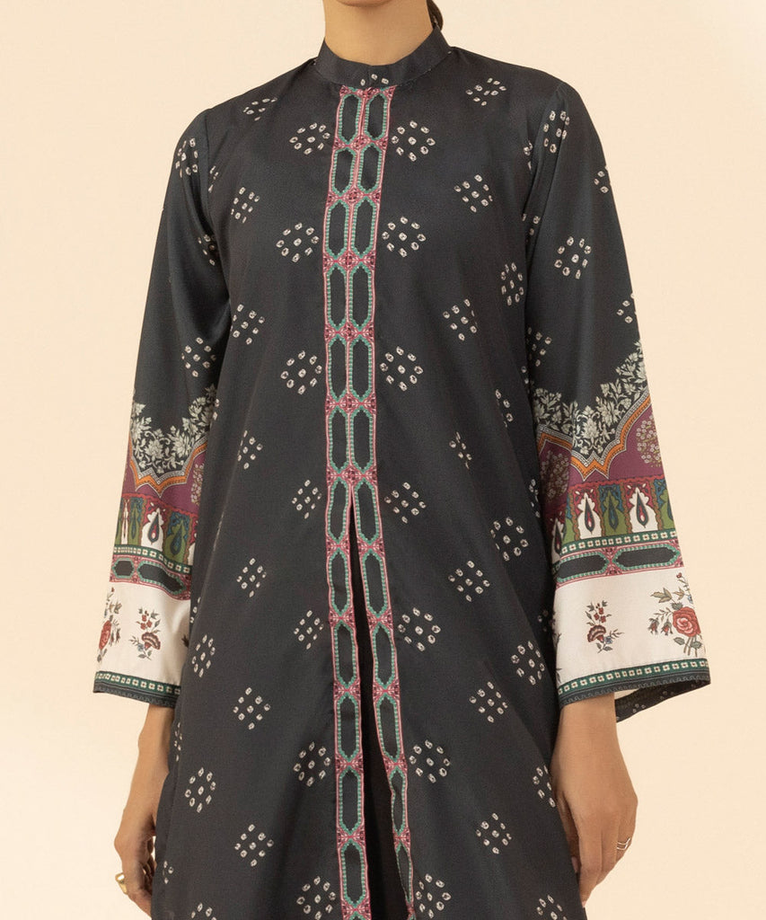 Printed Front, Printed Back, Full Sleeves, Band Neckline With Slit