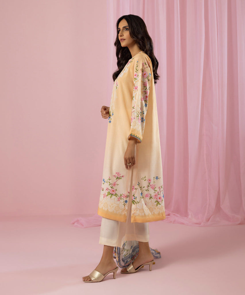 2-Piece Straight Kurta with Dupatta Immerse yourself in a floral fantasy this Eid, with this yellow silk silhouette f...