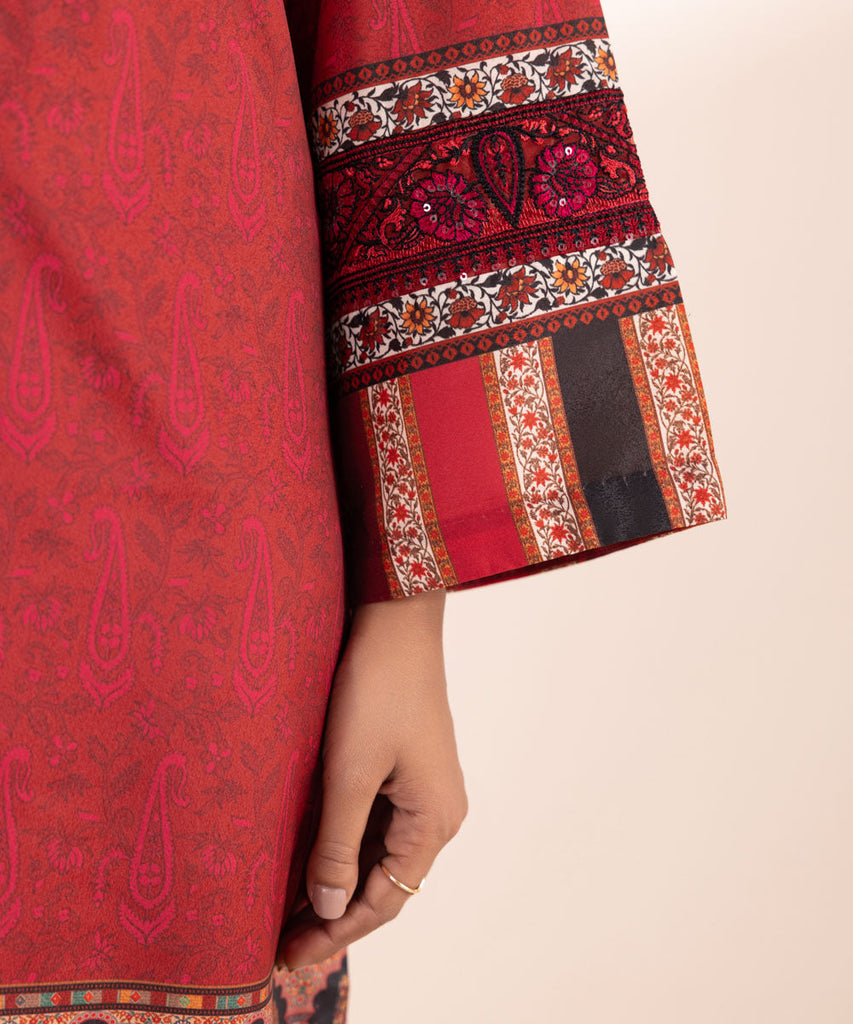 3-Piece Straight Kurta with Trousers & DupattaPerfect your summer style with our three-piece deep red suit featur...