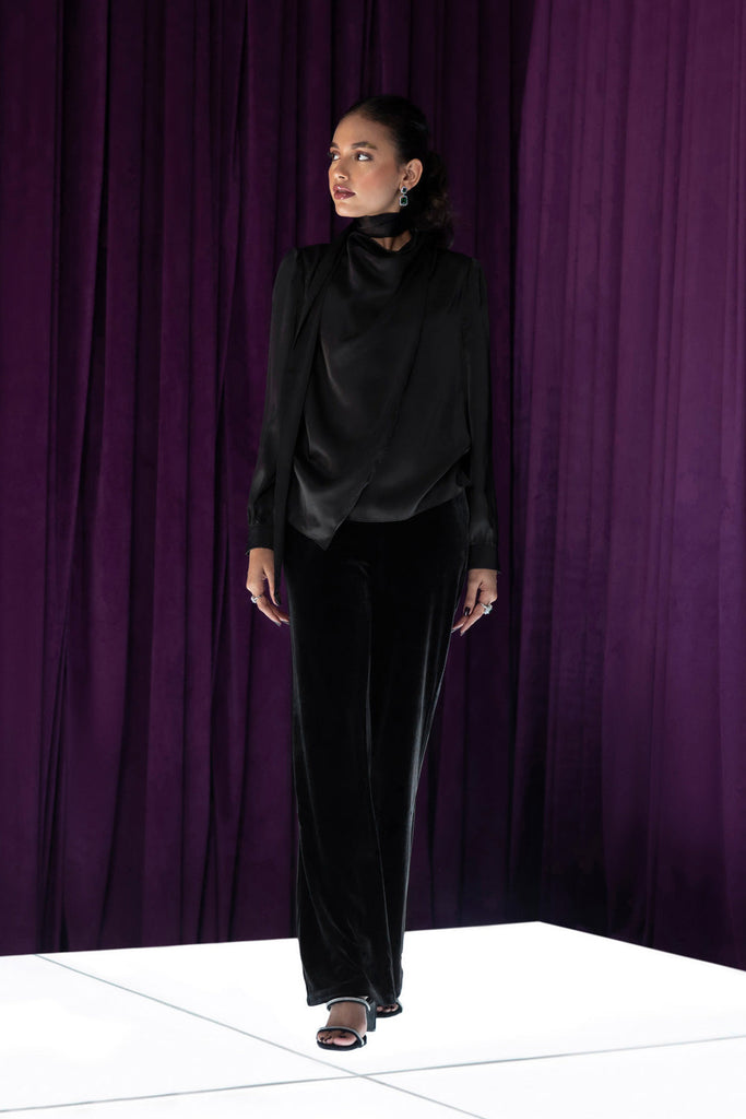 Blouse with Draped Collar with Satin Scarf