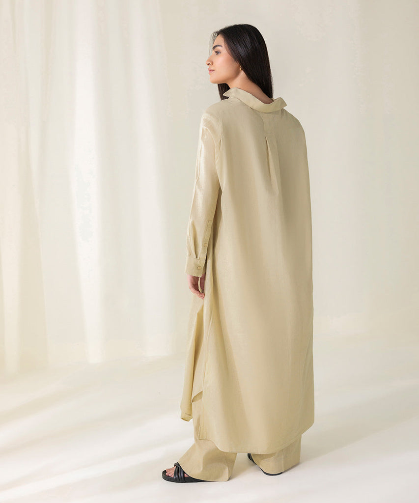 Loose-fit dress with collar and front opening. Full sleeves. Side seam pockets. Side slits. Details: Colour: Beige F...