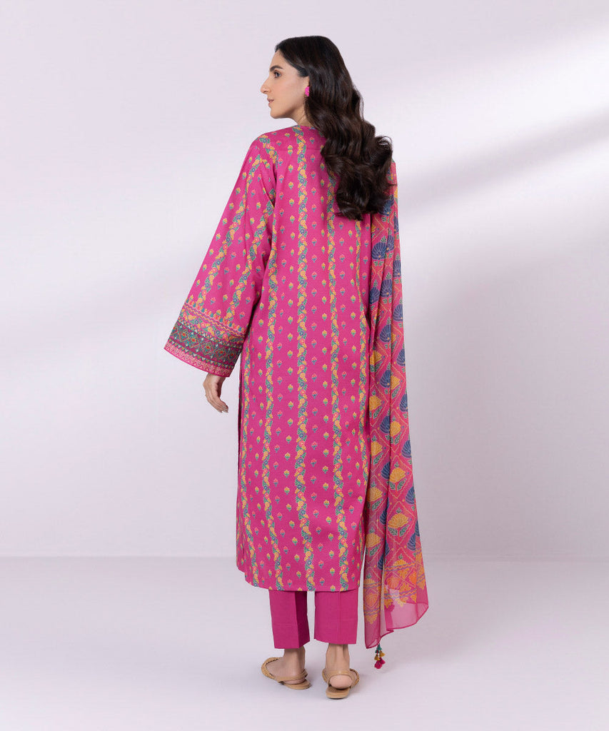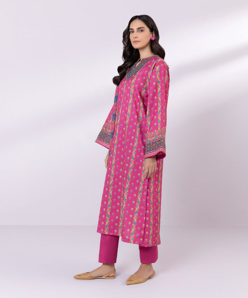 Straight KurtaCreate a memorable look this Eid in our pink printed lawn, long straight shirt with full sleeves and a ...