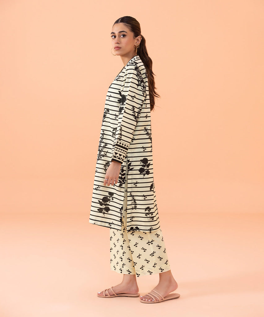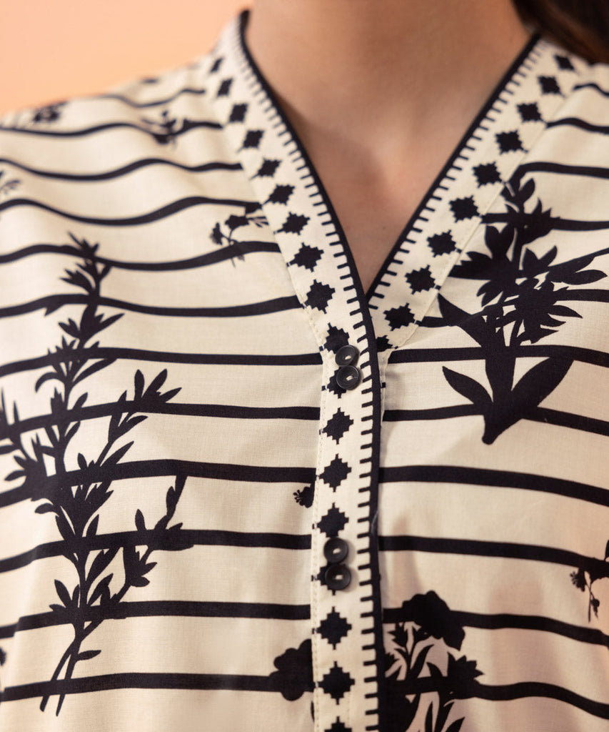 Straight Kurta Our monochrome floral patterned straight silhouette is a must have! Details: Printed Front, Printed B...