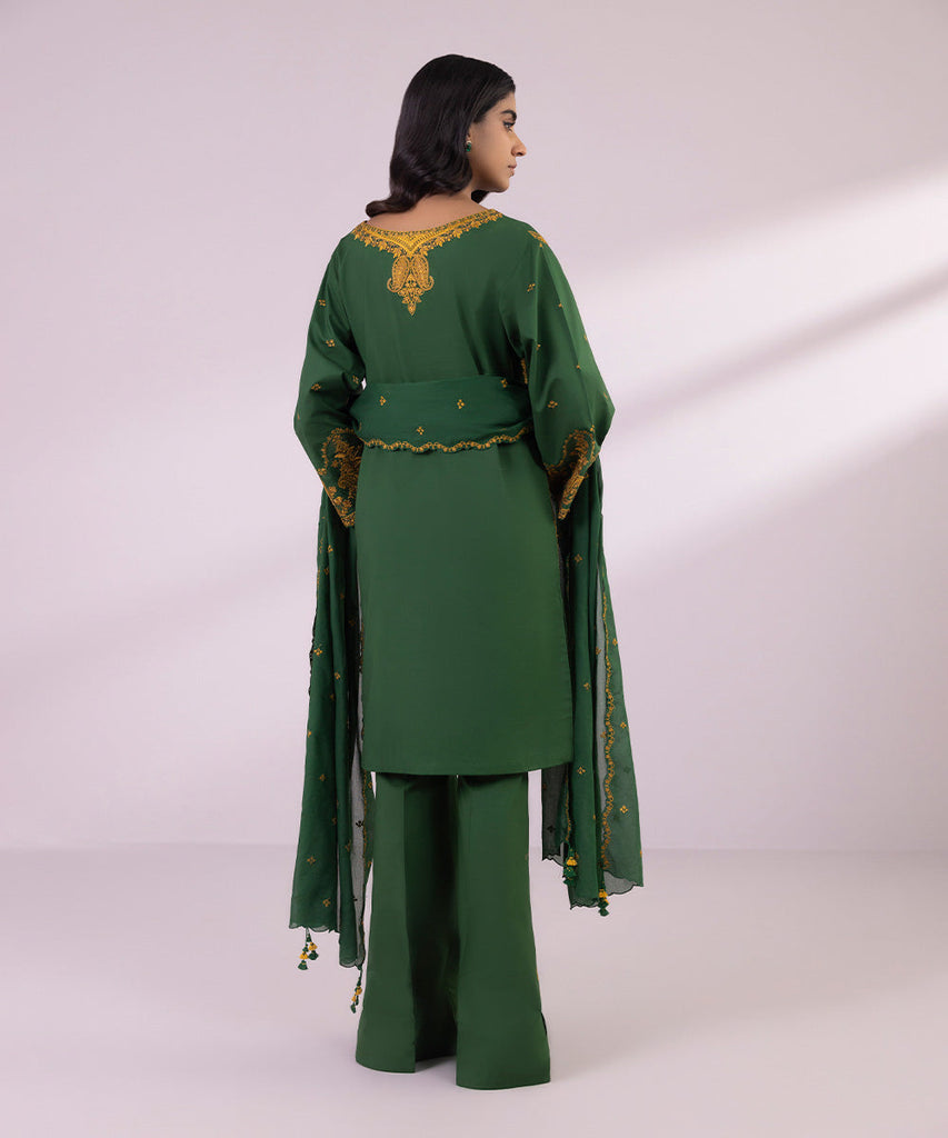 Boxy ShirtCreate a memorable look this Eid in our cadmium green, embroidered lawn boxy shirt with flared full sleeves...