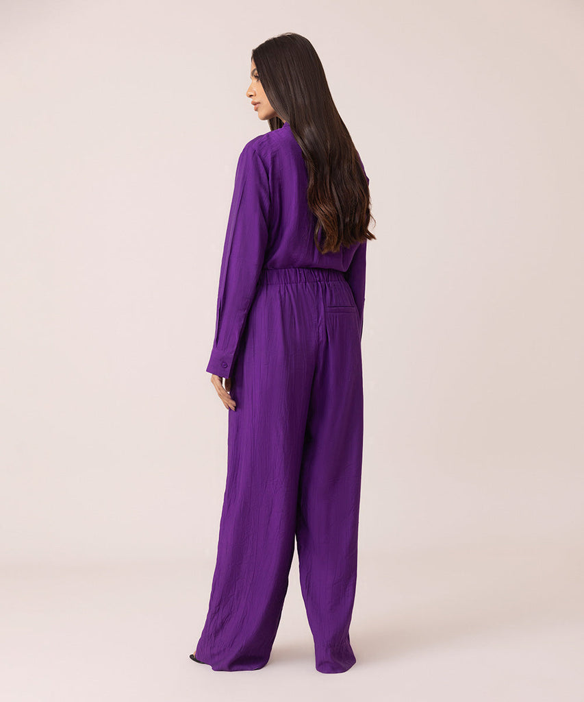 Wide leg trousers in crinkle fabric. Elasticated waist. Side pockets. Details: Colour: PurpleFabric: 100% Polyester S...