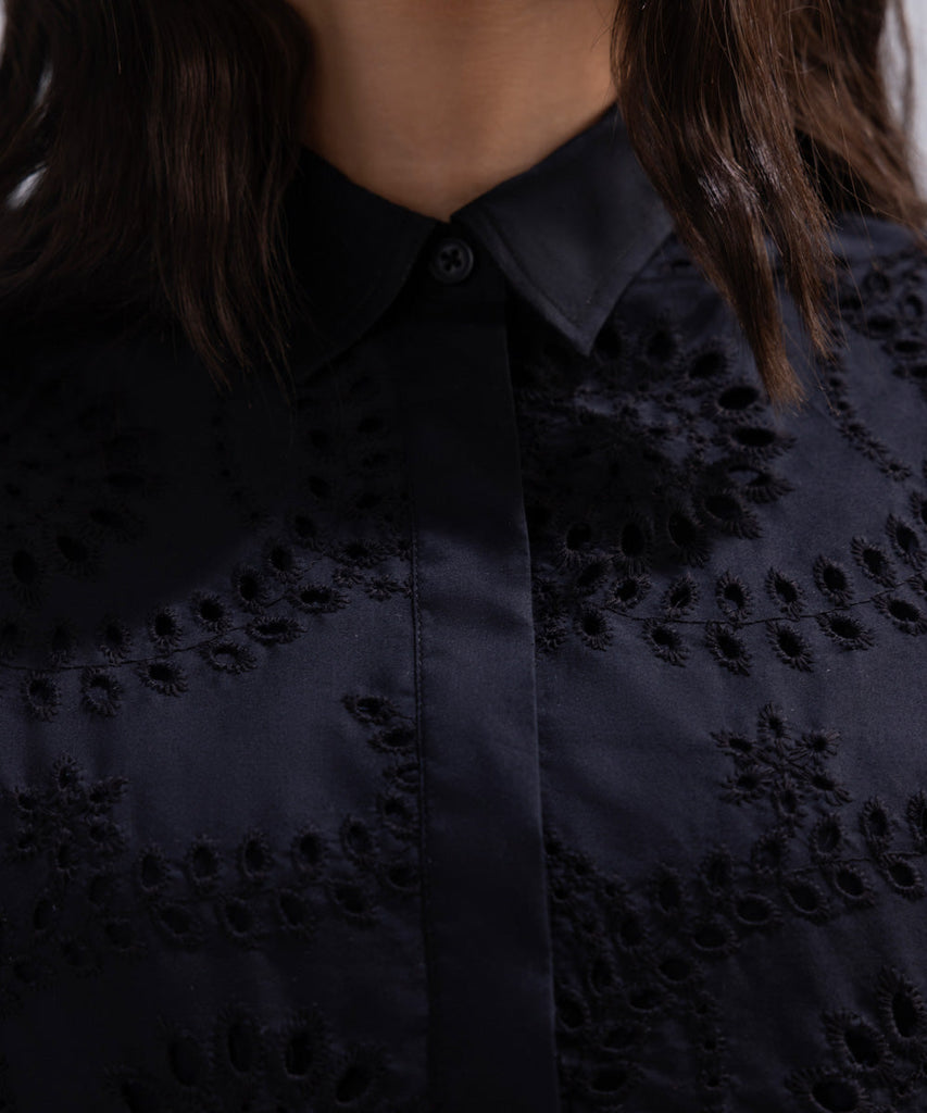Shirt with overall embroidery. Collar with button through opening. Full sleeves with cuffs. Details: Colour: Black F...