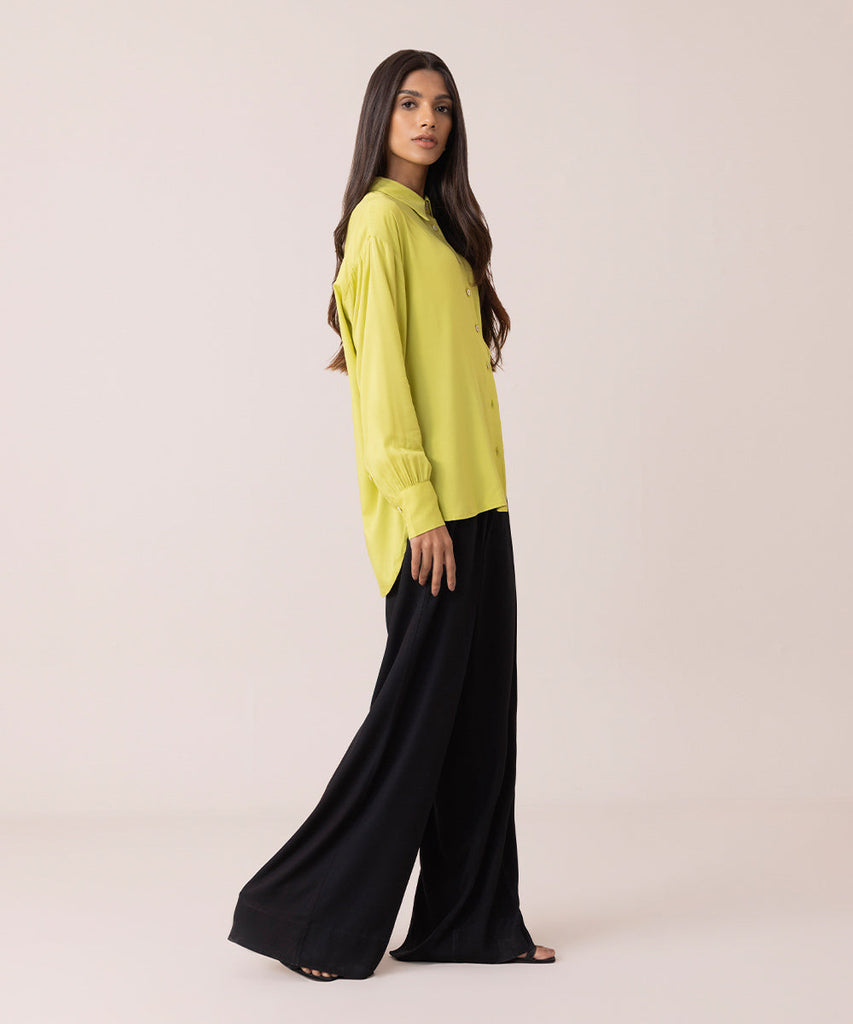 Loose-fit printed shirt with button through front opening. Collar. Full sleeves. Patch pocket. Dropped back hem.