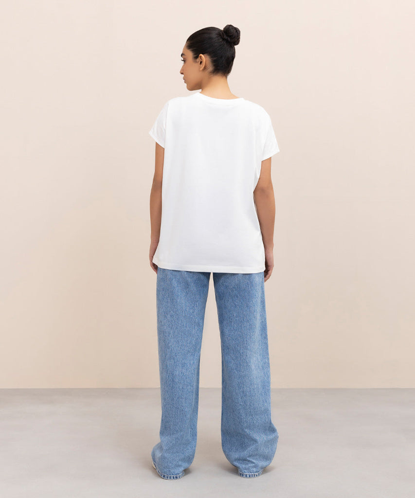 Loose-fit short sleeved kimono T-shirt with round neck. Details: Colour: White Fabric: 100% Cotton Size & Fit Mo...