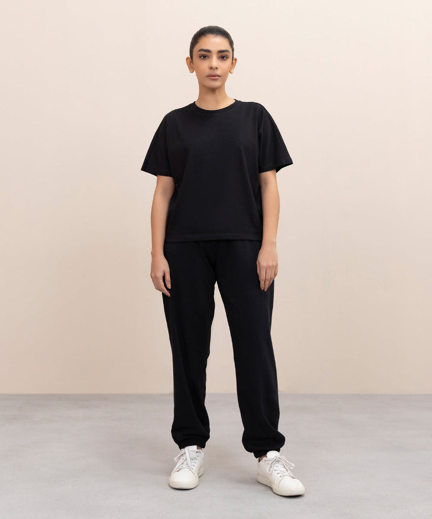 Cropped T-shirt with short kimono sleeves and round neck. Details: Colour: Black Fabric: 100% Cotton Size & Fit ...