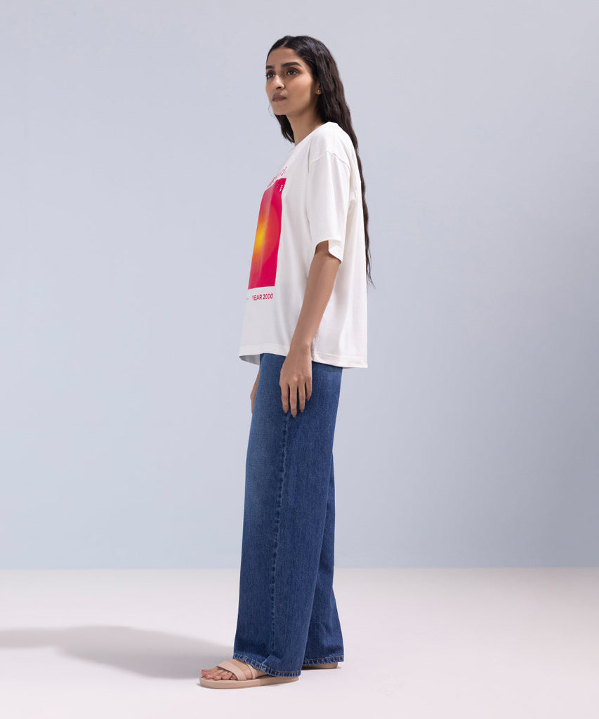 Oversized T-shirt with round neck and short sleeves. Graphic on front.
