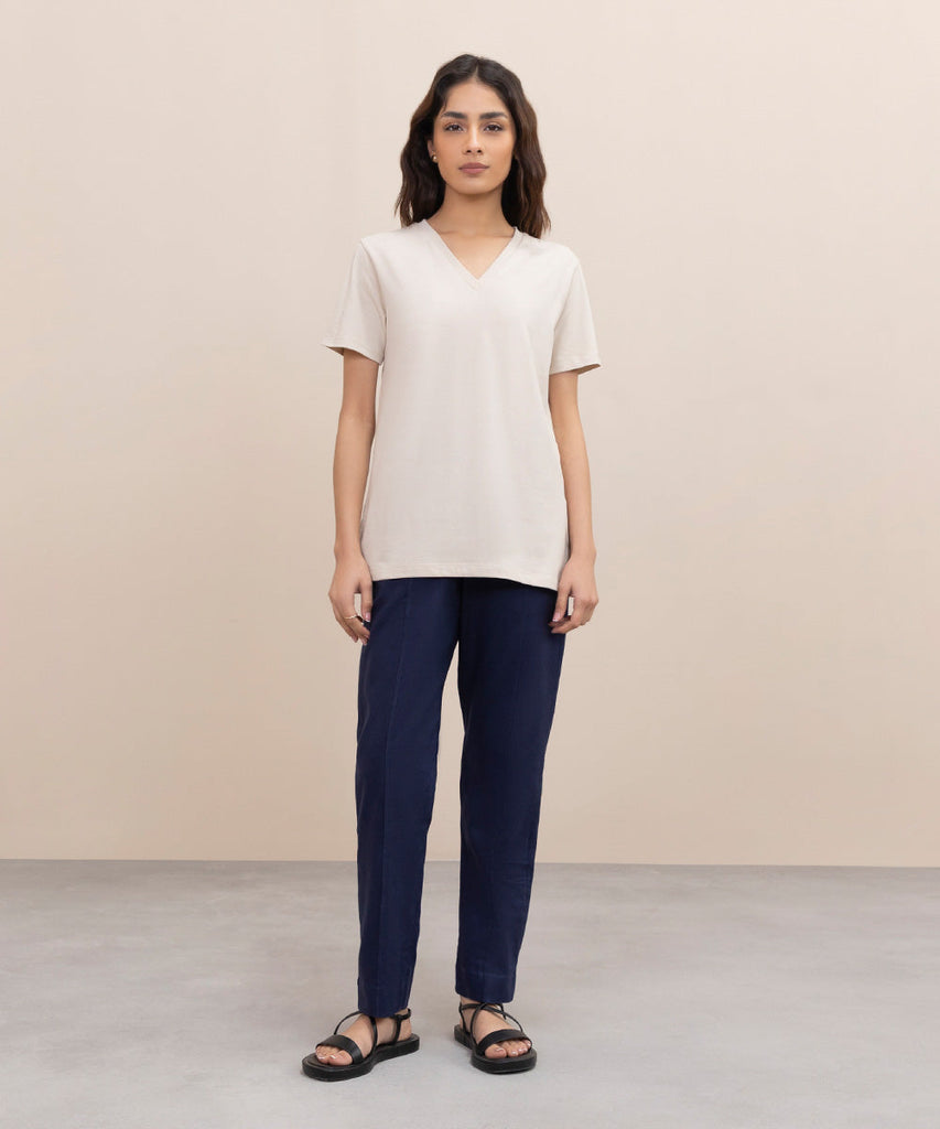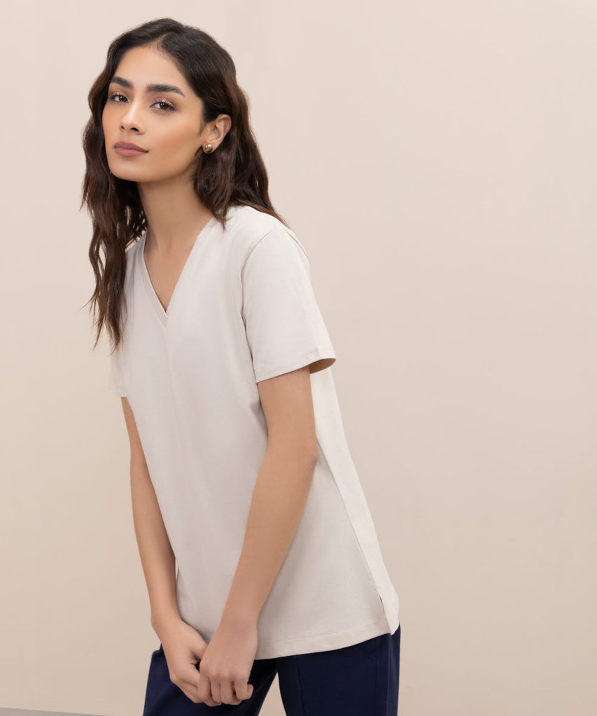 V-neck T-shirt in modal blend jersey. Short sleeves.