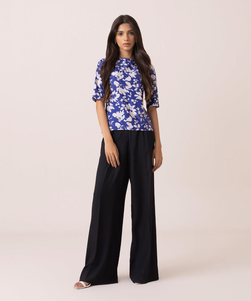 Printed T-shirt in stretchy fabric. Slash neck and short sleeves. Details: Colour: Blue Fabric: 100% Polyester Size ...