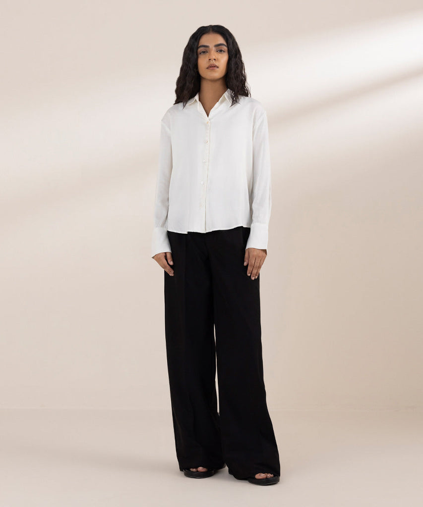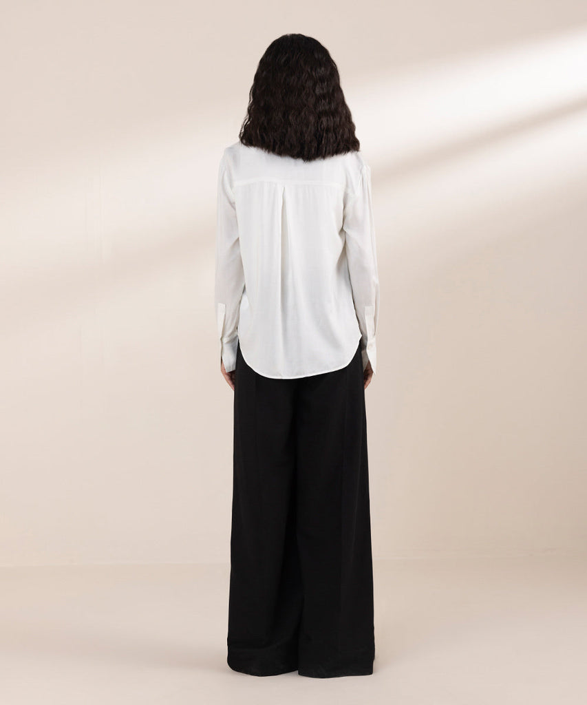 Shirt in flowy textured fabric. Collar with front opening. Full sleeves with cuffs. Details: Colour: WhiteFabric: 100...