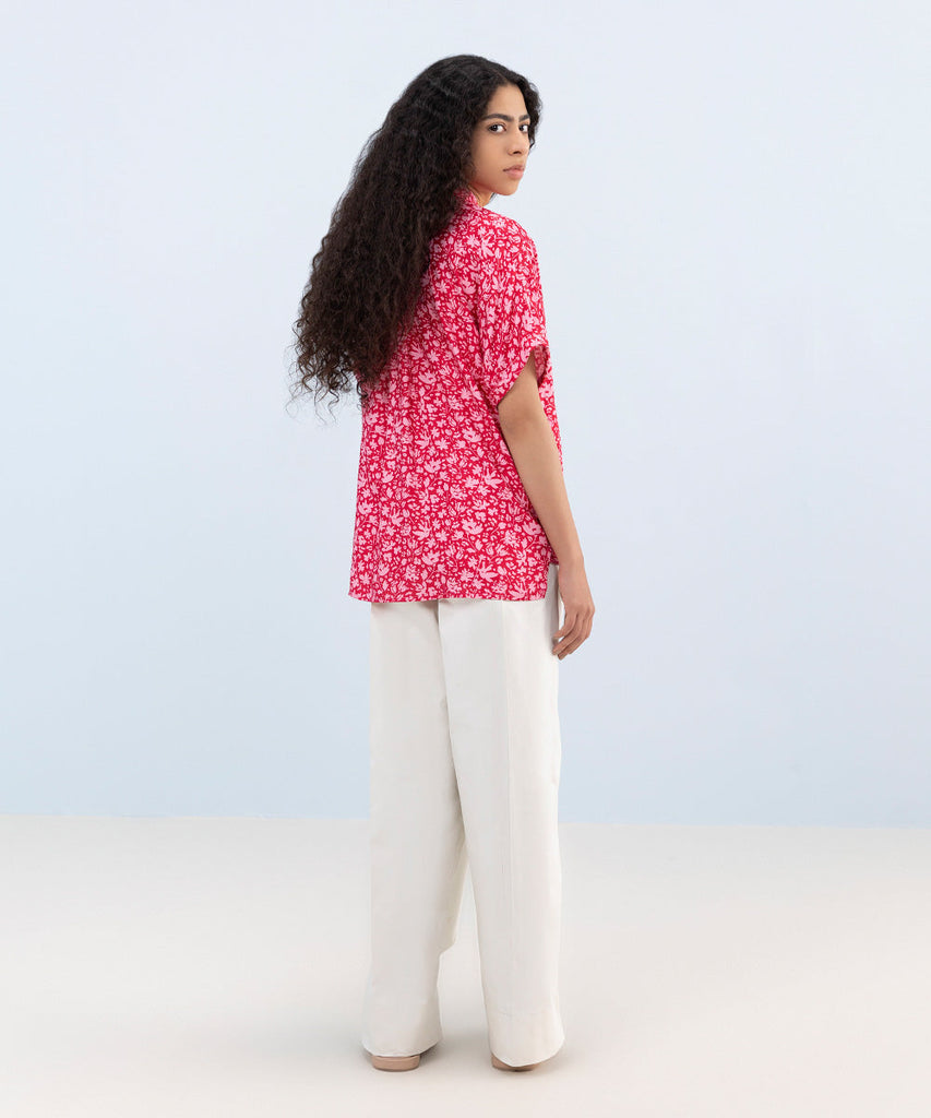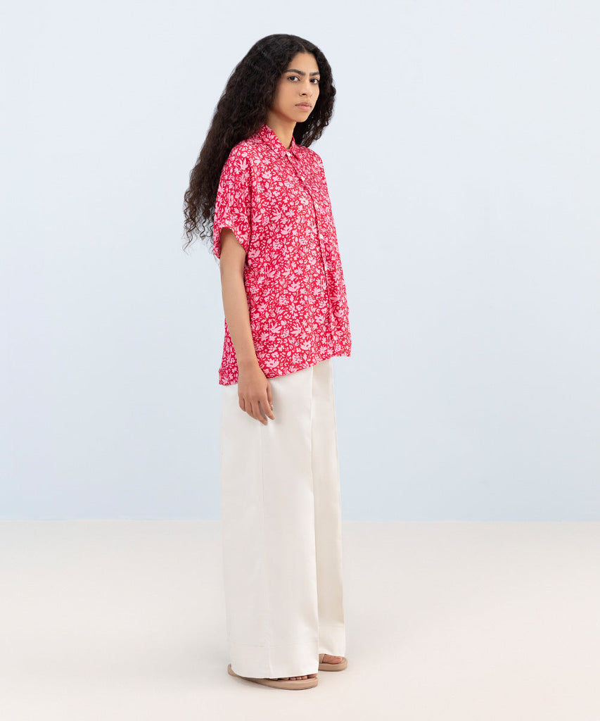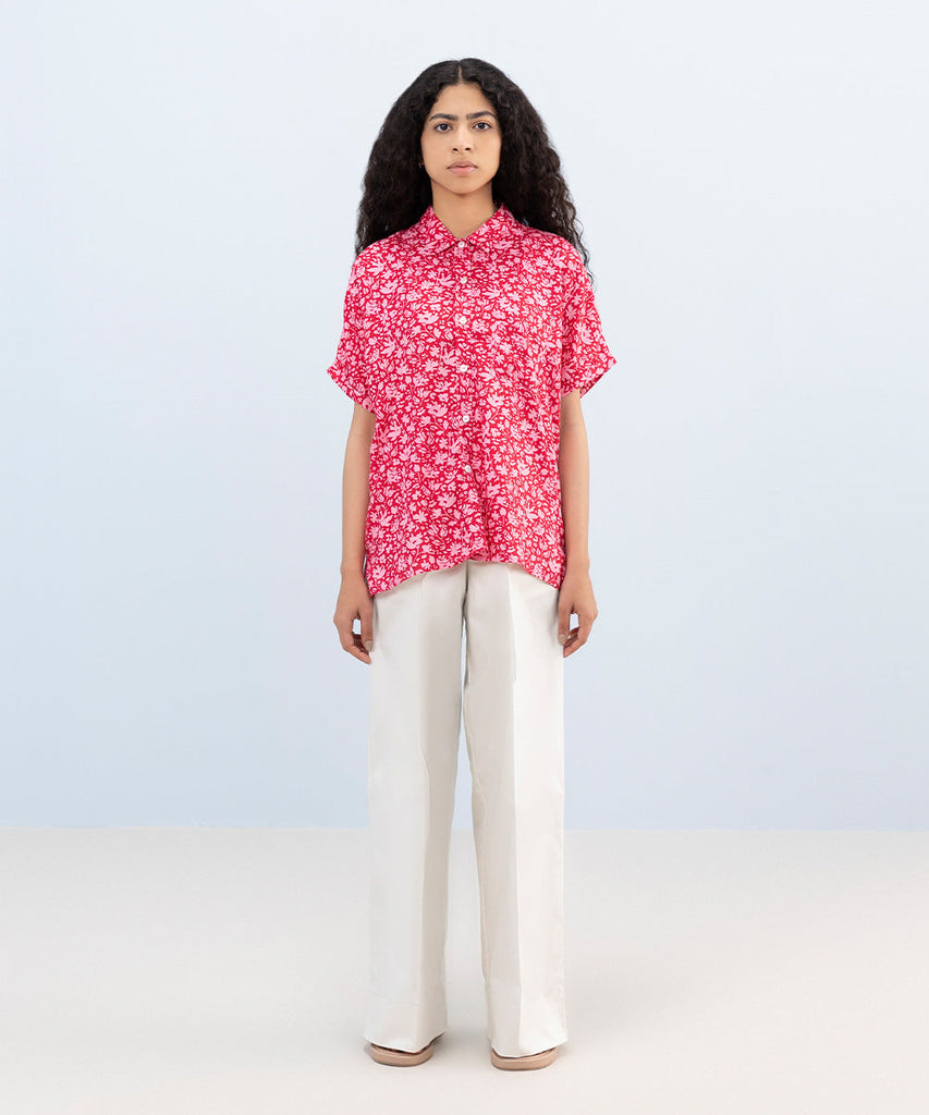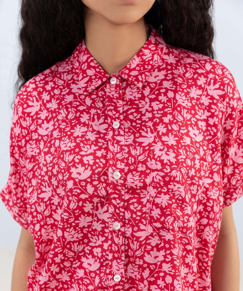 Loose-fit shirt in textured dobby viscose fabric. Collar with front button through opening. Kimono sleeves. Patch pocket. Back yoke with box pleat.