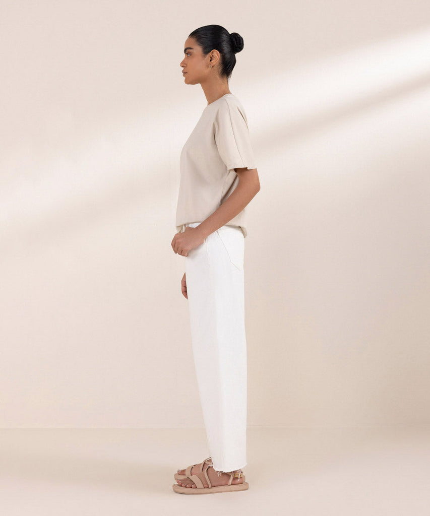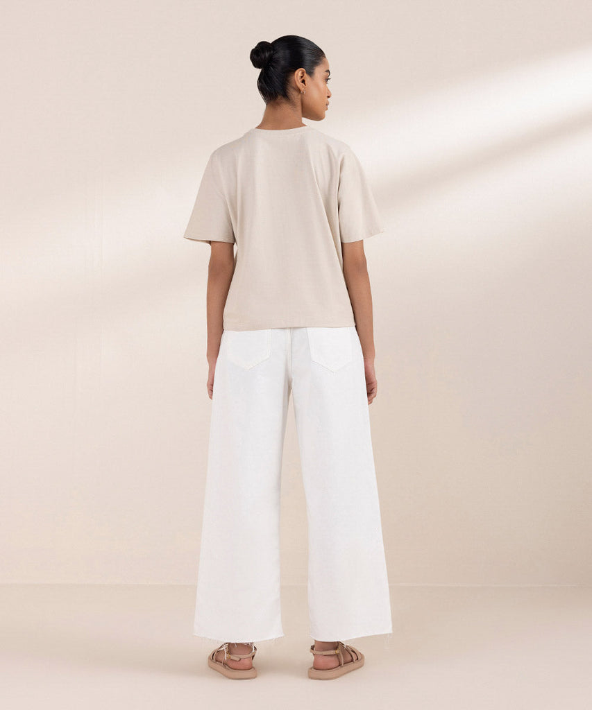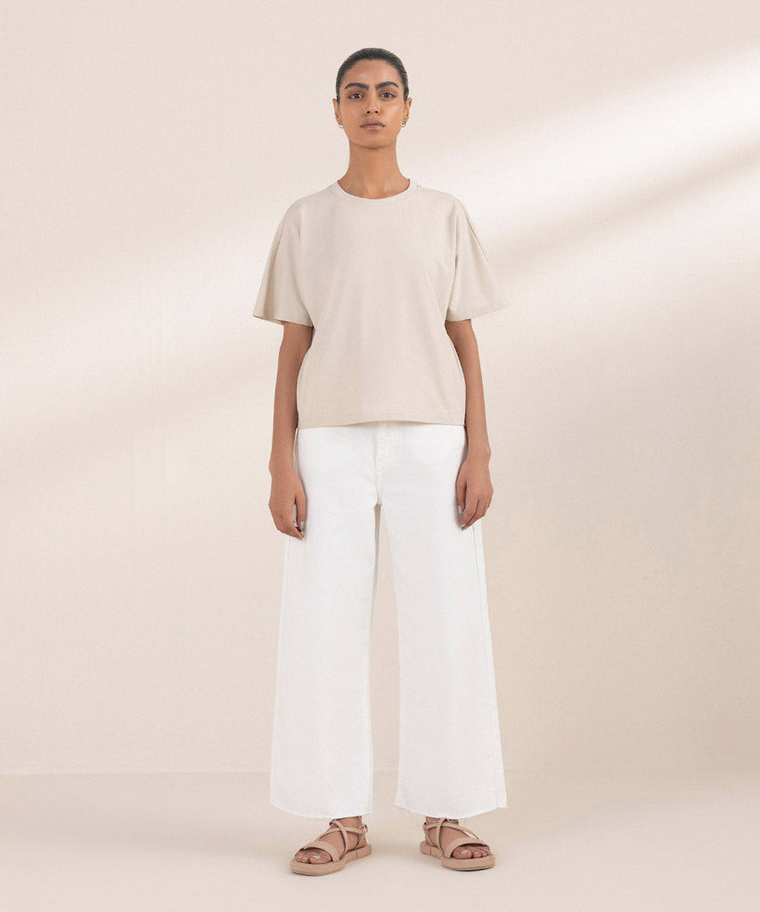 Cropped T-shirt with short kimono sleeves and round neck. Details: Colour: BeigeFabric: 100% Cotton Size & FitMod...