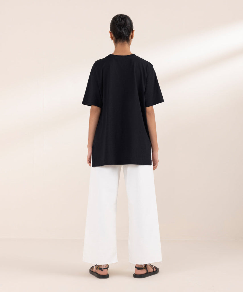 T-shirt with round neck, short sleeves and side slits. Dropped back hem. Details: Colour: BlackFabric: 60% Cotton 40%...