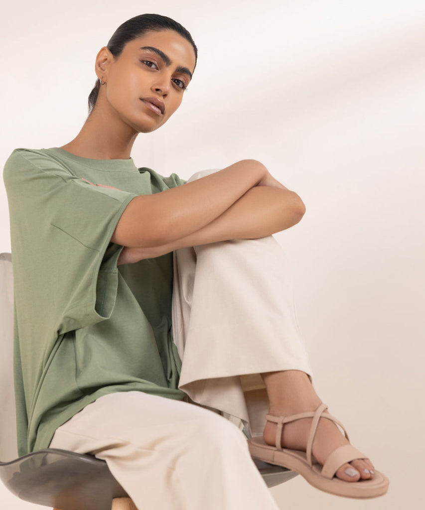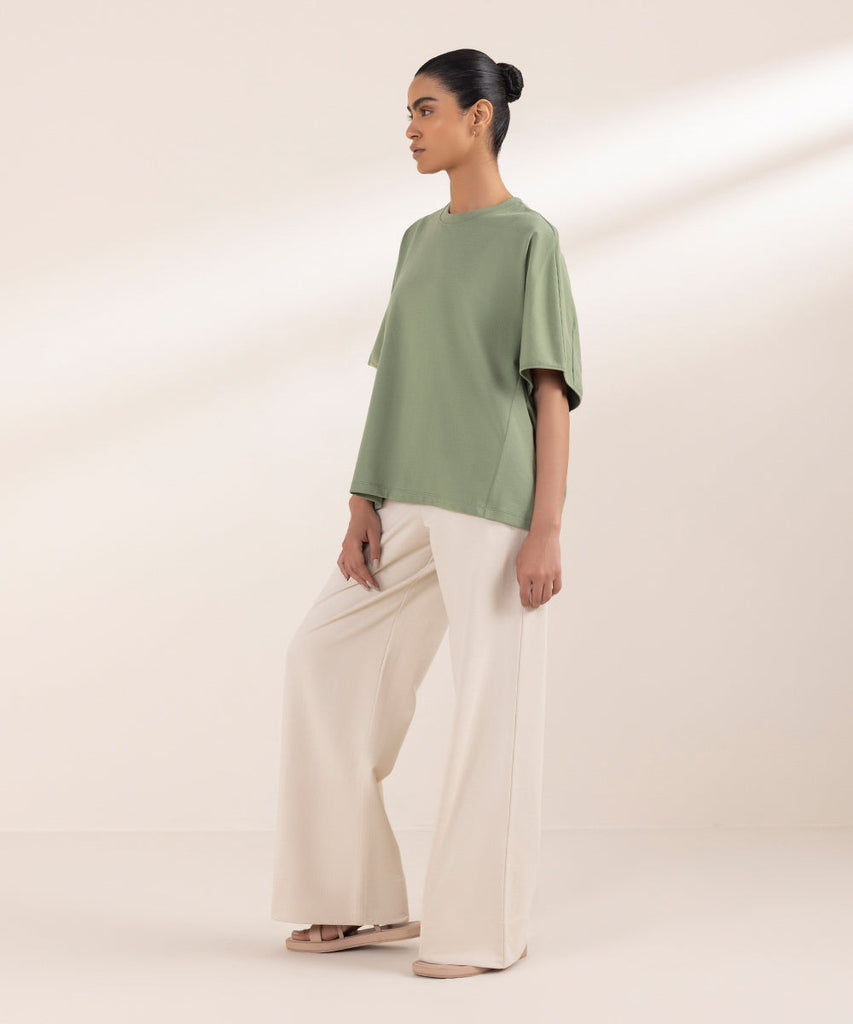 Oversized T-shirt with kimono sleeves and round neck. Details: Colour: Light GreenFabric: 100% Cotton Size & FitM...