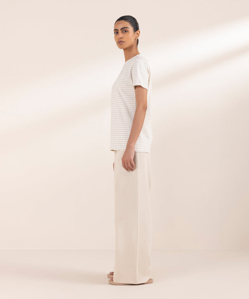 Yarn dyed striped T-shirt with round neck and short sleeves.