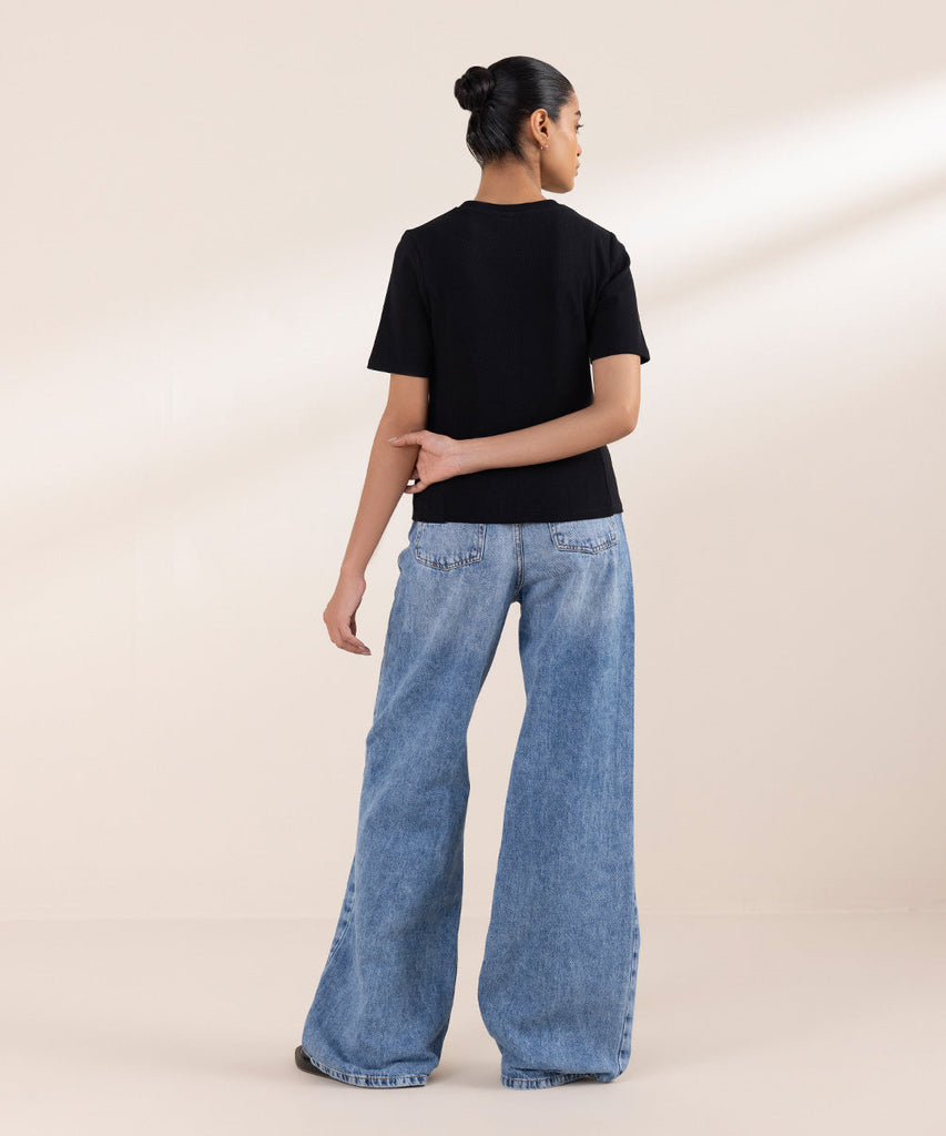 Slim fit T-shirt in ribbed fabric. Short sleeves and round neck.
