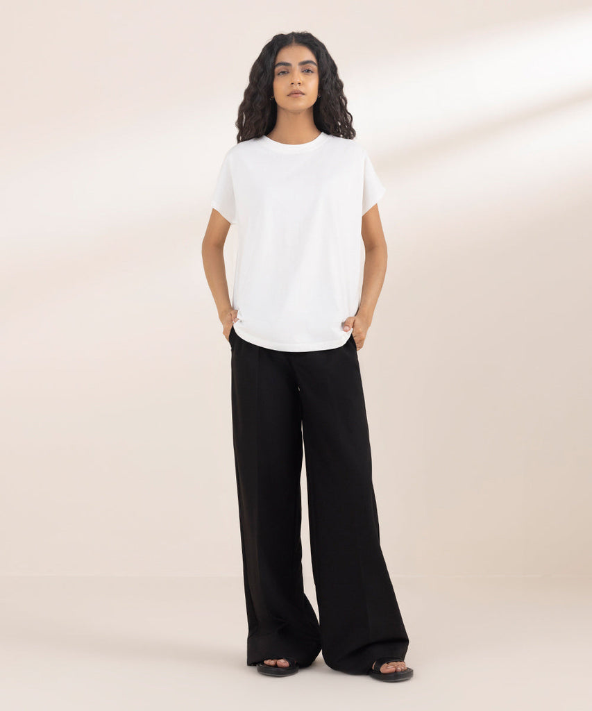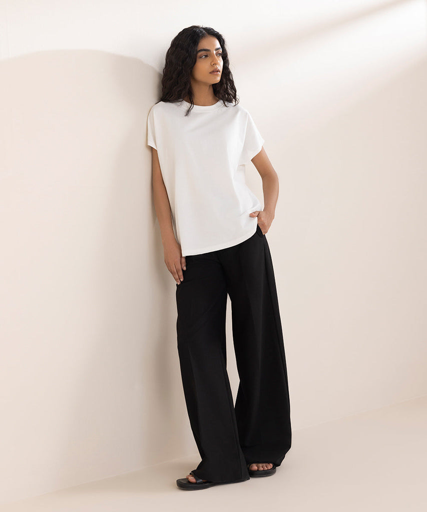 Kimono T-shirt with round neck and short sleeves. Details: Colour: WhiteFabric: 100% Cotton Size & FitModel Heigh...